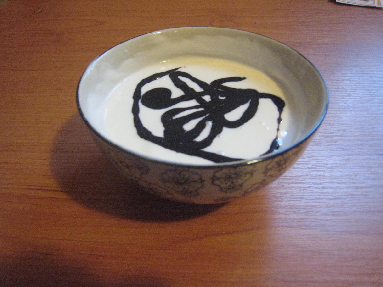 Večera:jemný tvaroh zmiešaný s vanilkovým sójovým mliekom a poliaté čokoládovým topingom.Bol skvelý 😝
