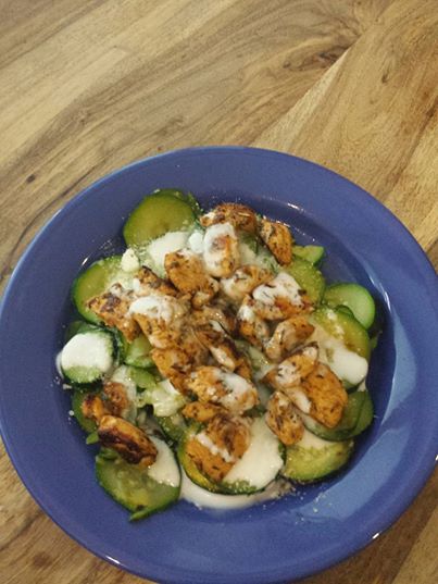 Moja vecera, kuracinka na provensalskom koreni, s dusenou cuketou a posypane parmezanom, dressing-jogurt...bola to fajnotka