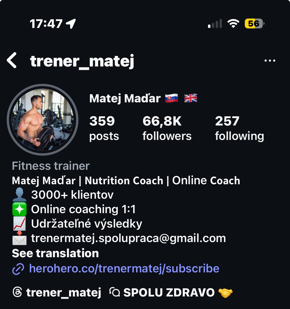 Ahojte na instagrame mi vyhodilo tohto chlapíka ako trénera. Poznáte ho? Odporúčate? Neviete v akej cenovke sa pohybuje