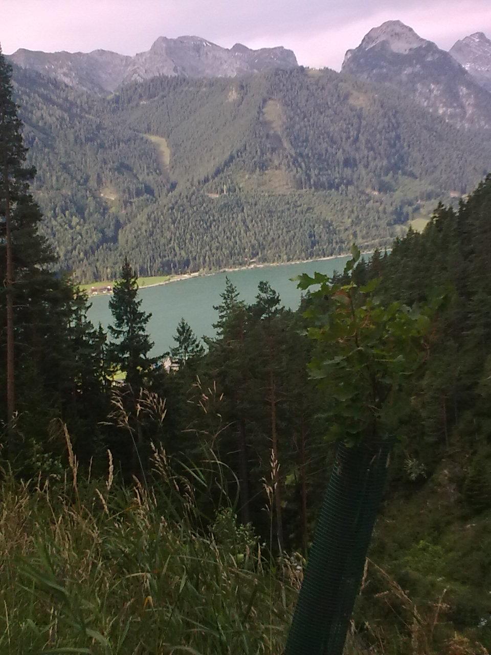 Baby jeto tazke, ja ich musim prva nazvat, sak mi tak skocili boty, psy, ach jo.Tak ta prva, tam sem vystupila z busu a par minut vystup do hor.Tam sme byvali. primo v lese.Ta druha je pohlad z hor na jazero Achensee.