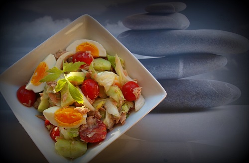 Ahoj kočky, nejak sa to tu zastavilo 😉 Ja cvičím poctivo každý večer, už druhý týždeň, jedine vo štvrtok som mala pause, lebo som mala svalovku jak hrom a cítila som,že telo potrebuje oddych. Cvičím stále ten Level 1 - Jill, dneska to bude 8 krát a veru už cítim, že mám o niečo lepšiu kondíciu, pretože pri prvých razoch som išla dušu vypustiť a teraz už docvičím v horšom normále 😅 Čo sa týka stravovanie, tak viac menej je to ok, akurát včera podvečer som sa neudržala, dala som si vačšiu porciu tej praženej ryže z obeda a potom ešte dva keksíky 😔 😲 🤐 . Dneska budem zase cvičiť a tým, že som doma, lebo malý má črevné problémy, tak si aj stíham pripravovať home lunch. Dneska je to zeleninkový šalátik - paprika, uhorka, cherry, cibuľa a varené vajko a tuniak. Osoliť, posypať šalátovým korením, pokapať oliv.olejom a zdravá chutná mňamka je hotová.