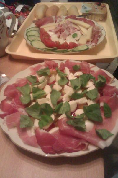 Baby..na inspiraciu... moja vecera, vzadu na obrazku je priatelova.. 🙂)) (vidite kolko veci tam ma, ale ani chut som na ne nemala)..caprese..dole plno paradajok, na tom mozarella..a bazalka...trosku sunky, ale ved to treba..no a o caprese....vlastne moja celodenna strava+kava s mliekom+pivko...no...nejak mi nevydalo viackrat jest za den...ale to je najhorsie, ze ani hladna nie som... a viete co? ja na to nejak kaslem...pekne sa stravujem... len mi nejde jest casto..no dufam ze schudnem nejak...fakt sa obavam ze kvoli hak ktore som davnejsie papala..neviem schudnut.... akoze psychicky mi je lepsie..des som si napr. pripadala v zrkadle chudsie..ale to som mala asi len skvelu naladu :D merat som sa nemerala..ale cojaviem..podla mna som neschudla..bojim sa merat..lebo na posledy ked som sa fakt snazila.tak som mala viac ako povodne ://// inac mastne veci nejem vobec...ani ryuz, zemiaky..moc nejak...papam vela orieskov, slnecnycovych semiacok...fakt moj prehresok raz za dva tyzdne sladkost... aj to mozno tak jeden kusok z bomboniery..minule som mala depku... tak cela bomboniera..ale inac vobec..dokonca aj vtedy som potrebovala zapit sladku chut vodou cistou...vodu len cistu pijem...dost vela denne...mala som dost slabost na chipsy..dokonca aj tie som vylucila..nejake 2mesiace nejem vobec uz...inac ako tak pisem, tak si uvedomujem ze vlastne co vsetko som za to podvedome urobila.. 🙂 mile no... vyhybam sa tomu riadne..a uz sa ani nesnazim-..na vahu radsej ani nestupim...veelmi by ma to demotivovalo.... naposledy ked som zjedla celu bombonieru..bolo po tom co somm videla rucicku na vahe ... :(( no nic to! akurat ma fakt mrzi ze sa neviem stravovat astejsie za den..ja viem ze v tom je hlane problem.. :// no nic to...drzim vam prsteky 🙂