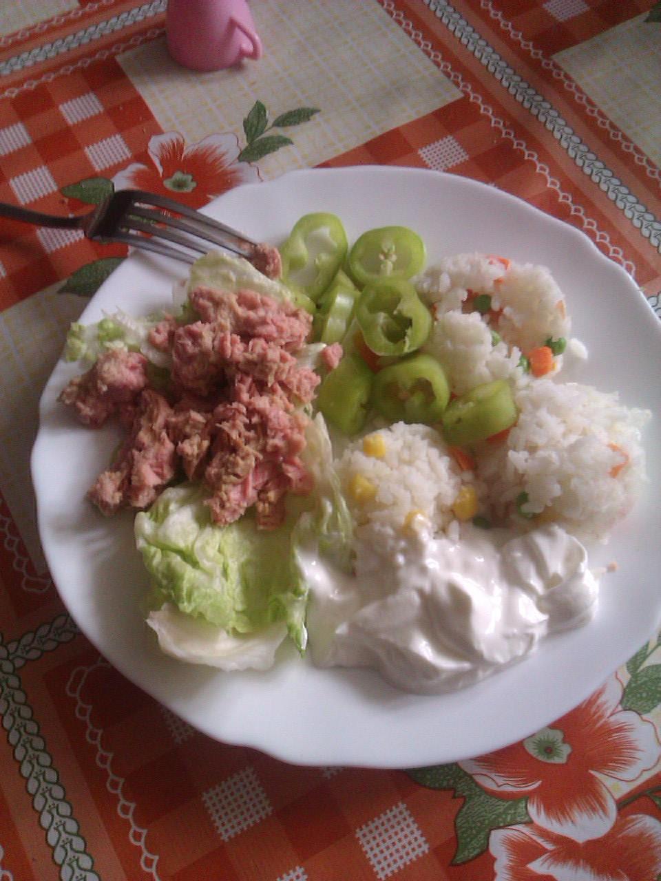Zachvilu koncim tyzden zdraveho papkania mam sa zajtra vazit tak som zvedava 🙂 tak toto bolo dnes na obedik 🙂 to biele nieje tatarka ale biely jogutik to len aby to vizeralo aj na oci dobre