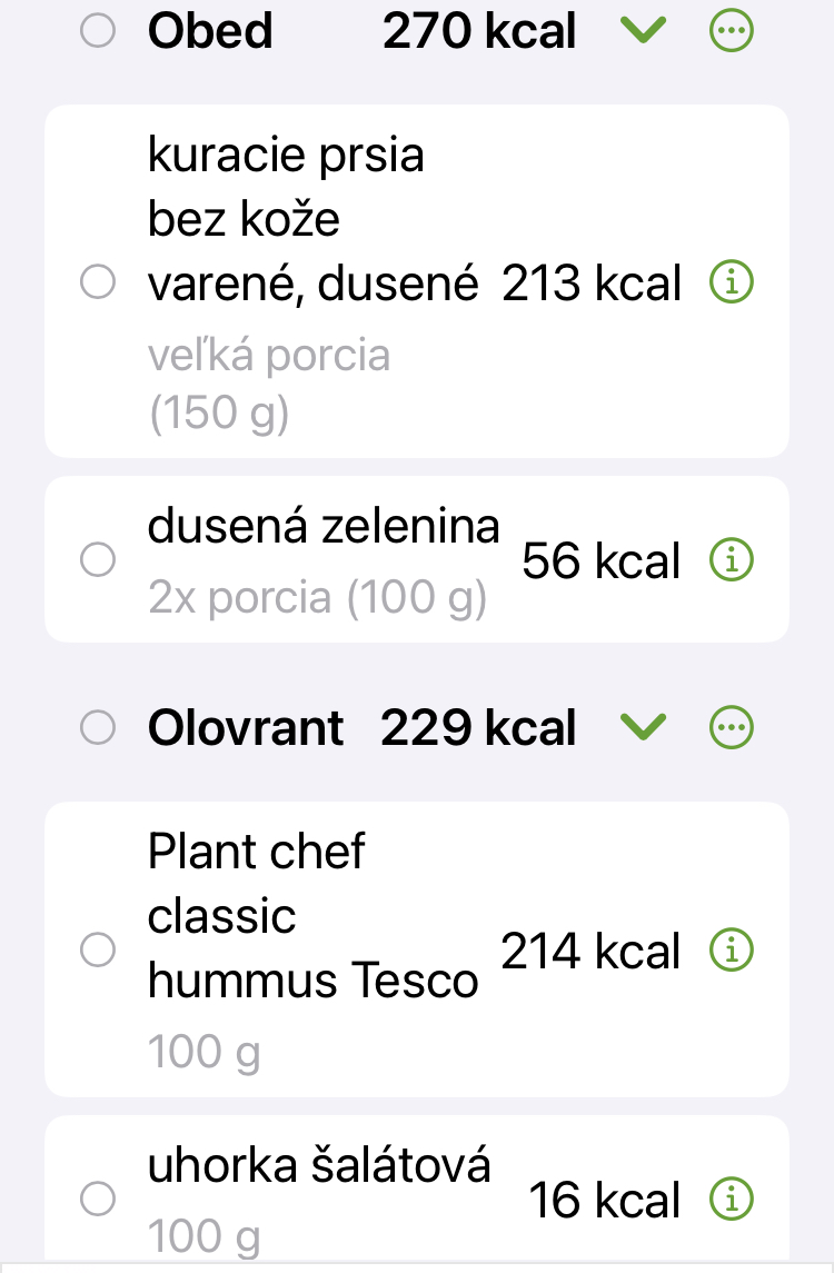 @simsalabim jeden krajec chleba s plátkom šunky, 100-120 mg čučoriedok, 150 mg kuracieho a do 200 mg zeleniny. Hummus asi 100 mg plus jedna menšia olúpaná šalátová uhorka - tú si namáčam do hummusu. Jeden stredne veľký pomaranč.