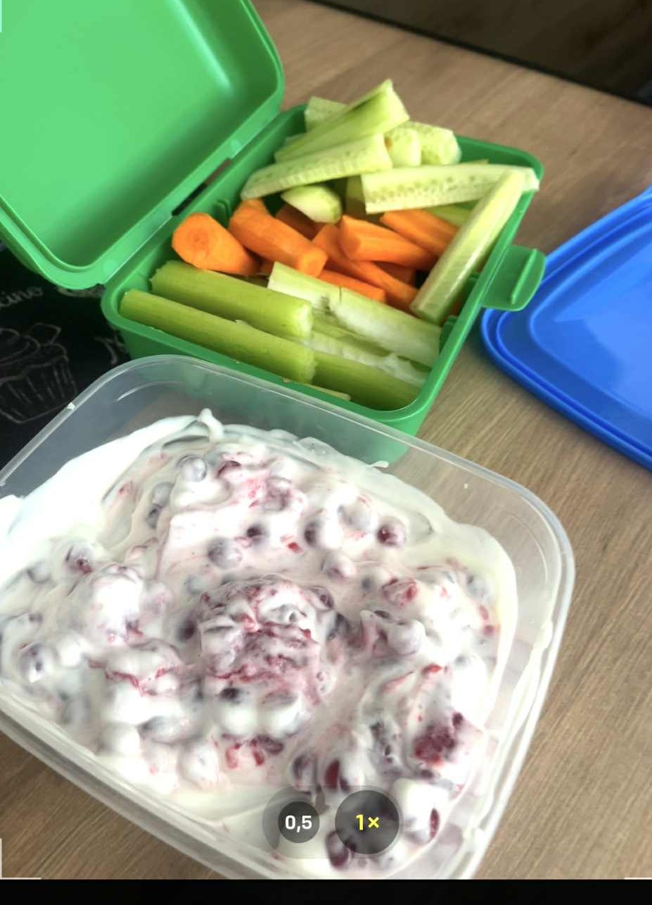 @simsalabim toto som si prichystala na zajtra do práce. Raňajky nízkotučný biely jogurt s ríbezľami a malinami. Na desiatu a na olovrant budem mať polovicu šalátovej uhorky, 2x menšia mrkva, 2 stopy zeleru. Na obed budem mať zajtra zrejme iba slepačí vývar, keďže desiata bude sýta. A na večeru si dám cottage cheese bez laktózy a ovocie.