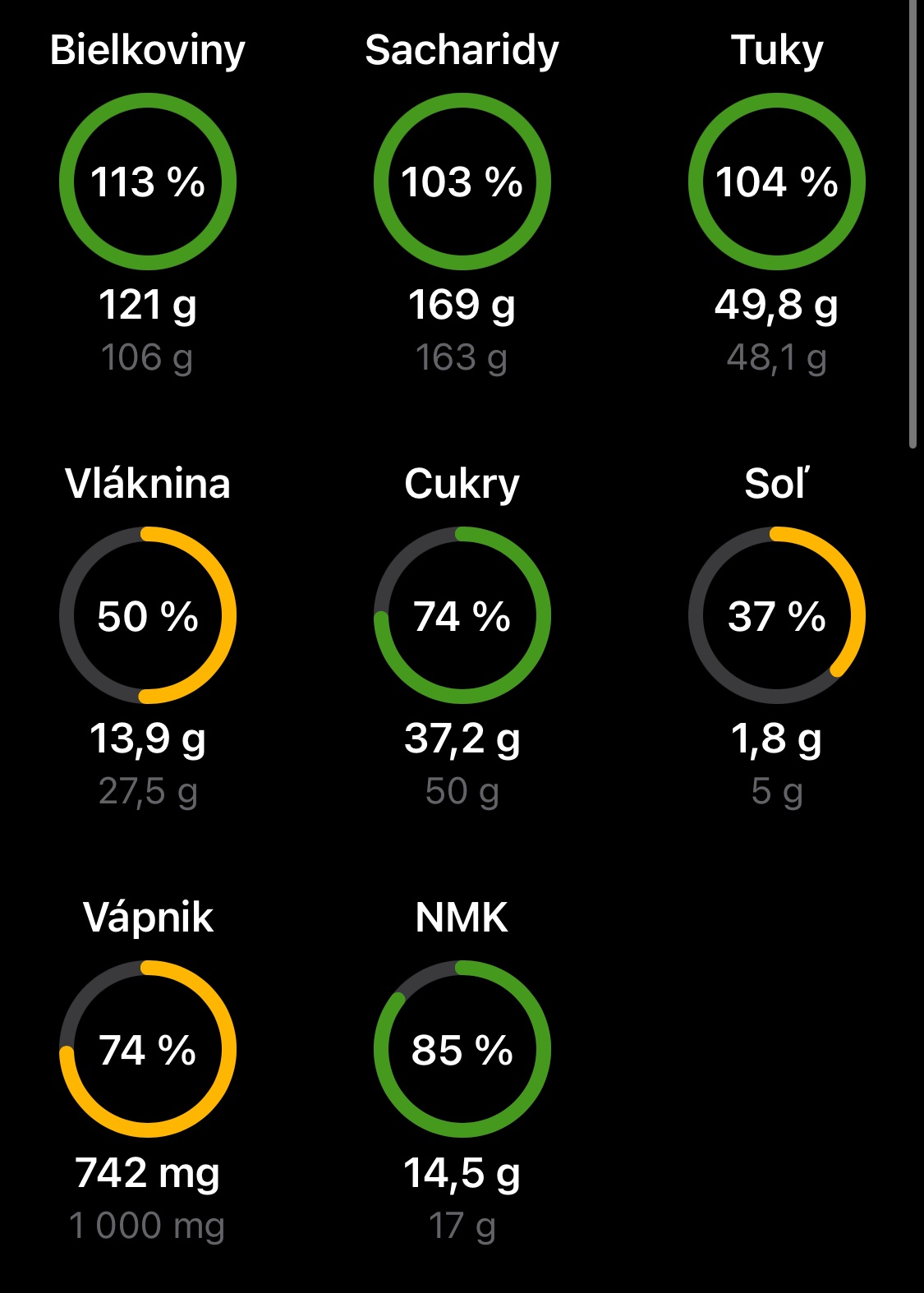 @lucia13022023 dakujem 🙂 a dakujem aj za podporu 🙂 skusila som uz dnesok naklikat, tak niesom az tak mimo ako som si myslela akurat tuky som presvihla o 10% ..ale vlakniny naopak splnam len na 30% :/