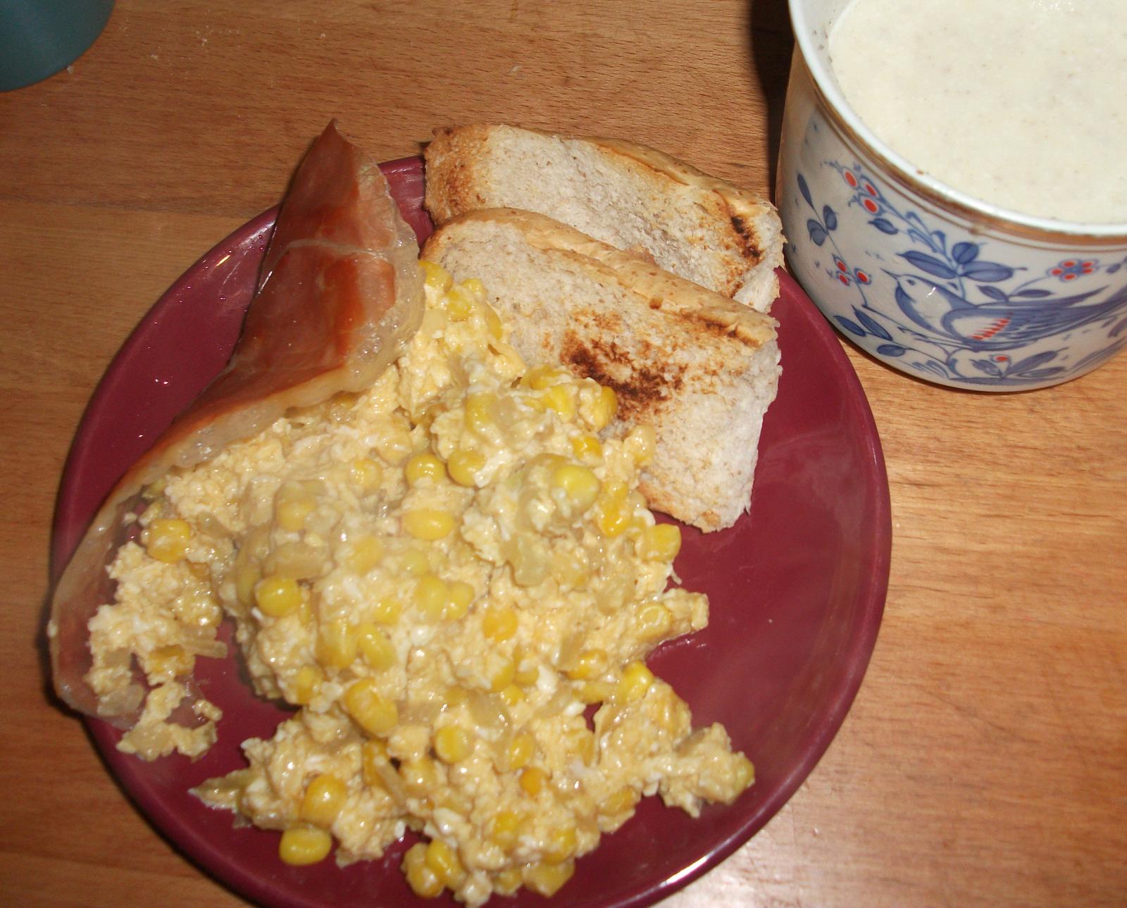 dnes - platok sunky, prazenicka na masle s cibulkou a kukuricou