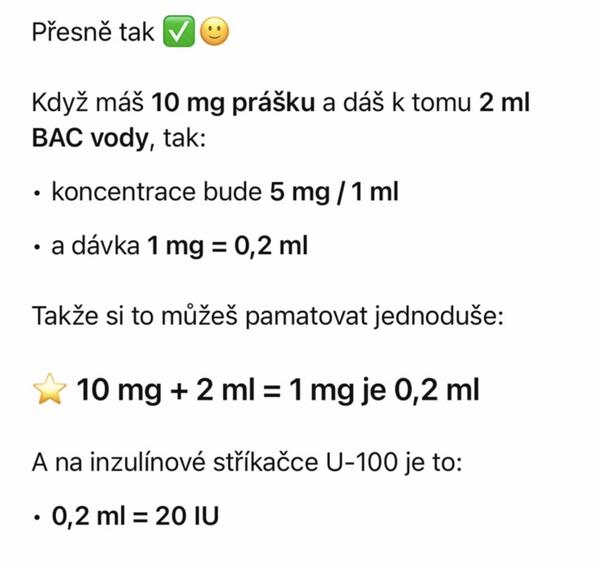 Baby prosim poradte - do rety 10mg treba dat 1ml ci 2ml vody? lebo citala som aj aj, tak neviem co je lepsie..a striekacky ked mam U100 a chcem si natiahnut 0,5ml, natiahnem na 10 ano? 🙏🏼