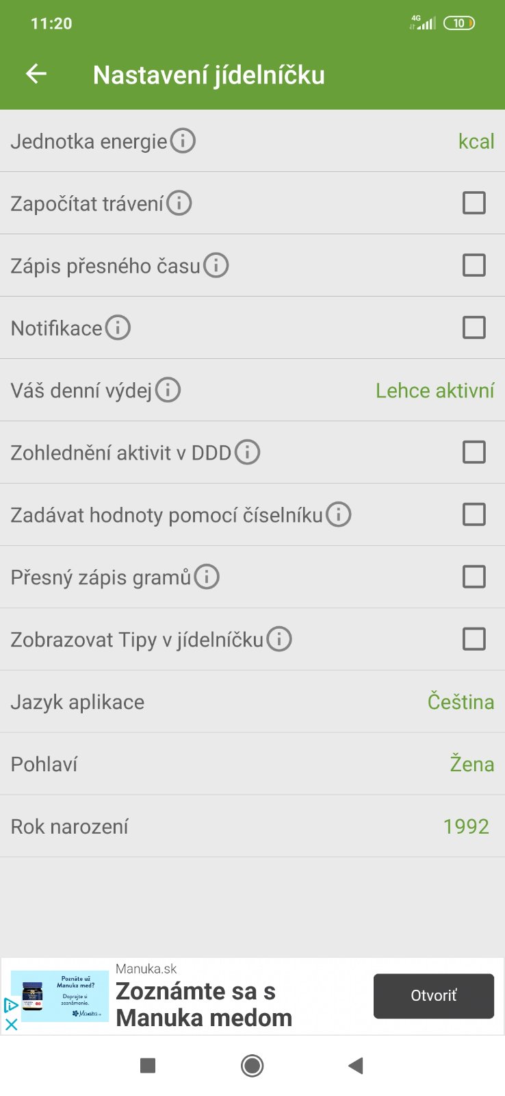 @aahajnalka ahoj,Este tam treba nastavit aktivitu..sedacia,lahka alebo mierna..no podla mna to mas zle nastavene,lebo ja mam 162cm,63kg a mne pri lahkom rezime vyslo 1600kcal a pri miernom 1800kcal.