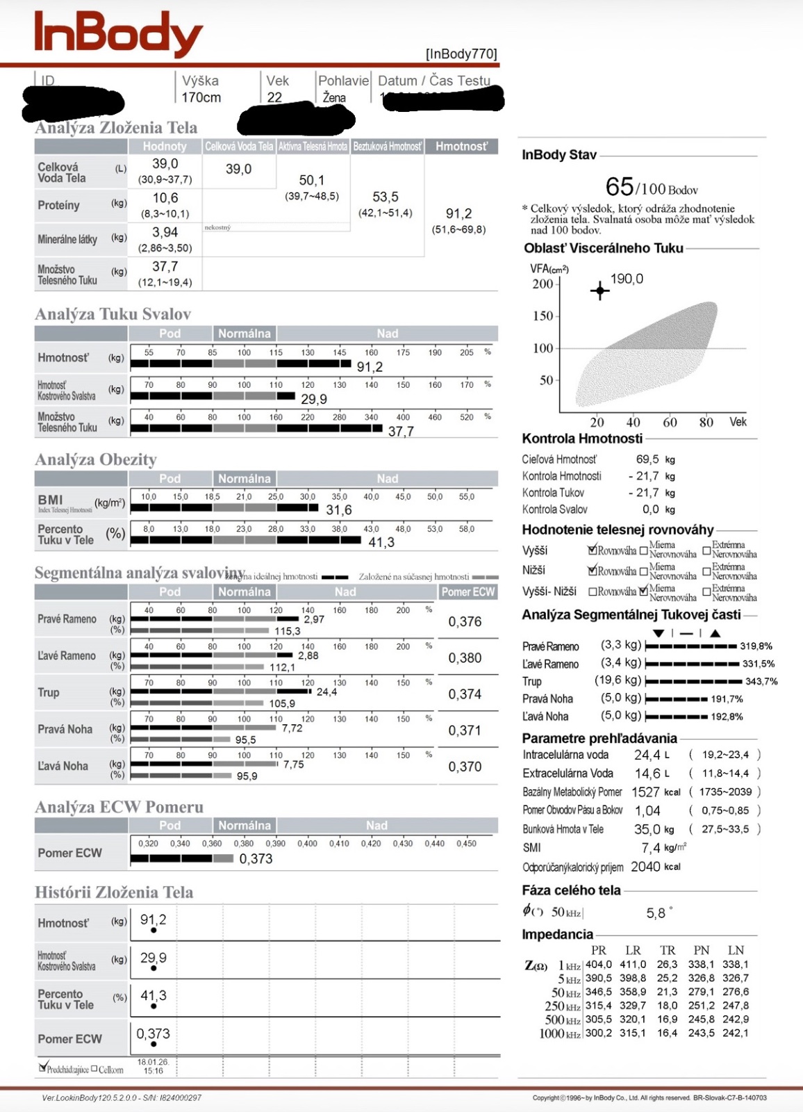 Ahojte baby. Dnes som bola na Inbody meranie no poriadne mi to nevysvetlili. Našiel by sa niekto kto by mi vedel vysvetliť cca čo znamenajú určite veci. A dosť rada by som sa poradila o následnom chudnutí, viem že to zašlo ďaleko, nepotrebujem komentáre o tom že som tučná, to viem. Pravidelne chodím cvičiť v posilňovni, tak 4x týždenne, niekedy 3 podľa času.