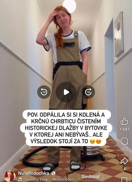 Mne je sympatická, keď na mňa vyskočí jej video, rada si ho pozriem... nemám žiadny vyhranený názor na prerábku chodby a nemyslím si, že na všetko názor mať treba, jednoducho iba našla toto ako obsah, ktorý zrejme aj ju baví a aj jej publikum a ako niekto dobre napísal, premenila svoje hobby na prácu, čomu fandím...