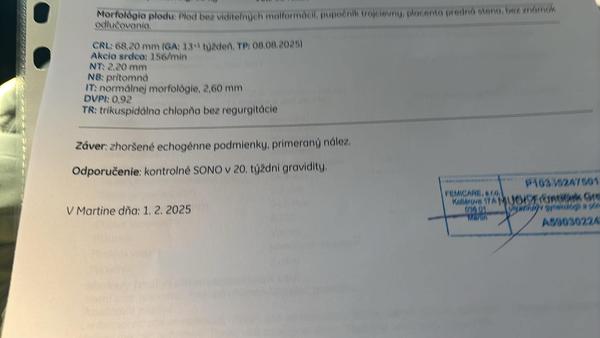 Takýto výsledok mi vyšiel, dnes som si bola pozrieť výsledok, plus odber na trizomy