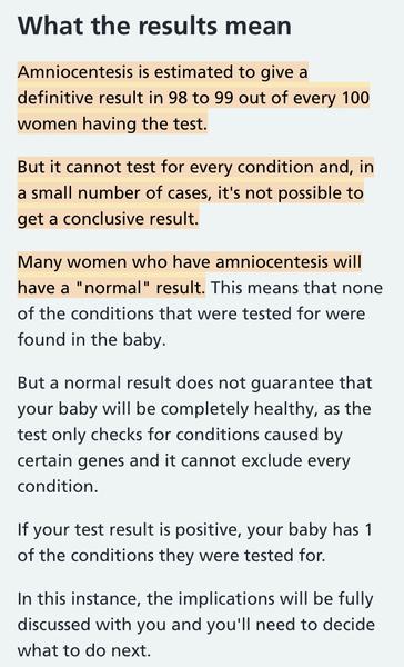 ja som bola tehotna pred 10 rokmi, vtedy platilo, že pozitívny výsledok z amnio je na 10% falošne pozitívny. Takže v podstate ked sa opýtaš 10 žien s pozitívnym vysledkom, tak 1 povie, že sa jej narodilo zdrave dieťa, napriek "jasnej diagnoze " po amnio