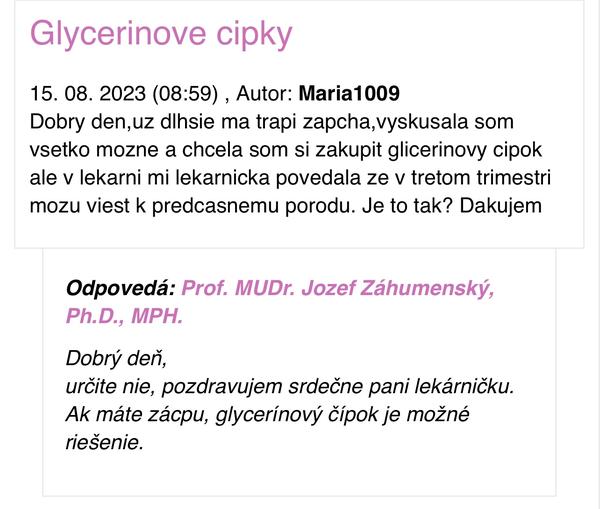 Zeny sice mam stolicu kazdy den ale mam pocit neuplneho vyprazdnenia a potom mam cely den bolesti podbruska, pocit tlacenia v podbrusku, pichanie a krce. V pondelok mam poradnu, urcite to budem rieist s lekarom. Ale moja otazka znie, moze zapcha v 3. trimesti poskodit? Nedajboze sposobit otvaranie, skracovanie krcka kvoli tomu “tlaku”? Poprosim neradit ako doplnit vlakninu a podobne, bojujem s tym od 1. Trimestra skusam vsetko, vzdy to prejde ale aj sa to zas vrati. Neni to nic strasne, su to mierne prejavy ale citim sa nekomfortne. Dik