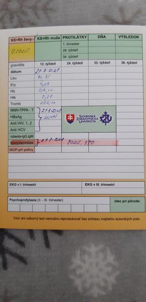 @ingrida1127 nevidím to dobre z tej fotky, nejak to neviem prečítať, ale nemusíš sa báť 🙂 ja som mala tiež pozitívnu toxoplazmozu, ale nízka hodnota, to znamená že v detstve som prekonala niekedy a ani som nevedela a v krvy to už doživotne budem mať pozitívne.. absolútne to tehotenstvo neovplyvnilo