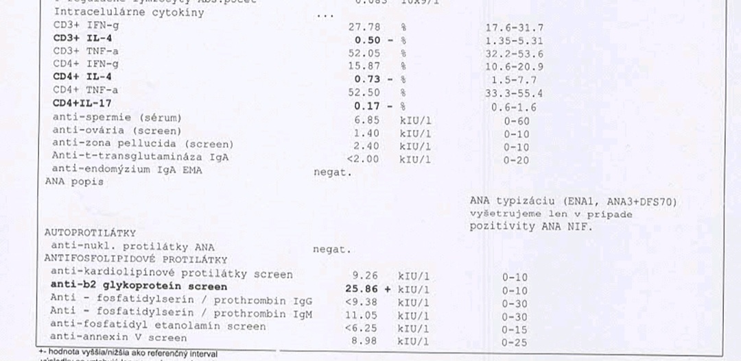 som v 6. týždni tehotenstva a bola som na reprodukčnej imunológii a vyšla mi zvýšena hodnota anti b2 indexu (pozrite fotku). Môj gynekológ nevedel čo to znamená a dal mi kontakt na ,,milú,, pani doktorka ktorá mi od 8 rána nezdvíha telefón a už som trošku nervózna. Neviete čo to znamená a ako postupovať dalej?