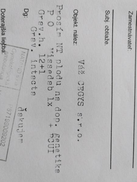 @petamich no bola som na tom screeningu u svojej Dr. ale nemerala NT lebo nato nemá prístroj to je ešte stará dr. Preto ma asi poslala do Trenčína k inému Dr. Ale nechápem tomu mu ze prečo mi sestrička volala že jej volali z genetiky že sa mám rýchlo objednať na to NT vyšetrenie lebo že vyšlo niečo pozitívne na tej genetike ale ako je na tom papieri tam je screening negatívny tak prep nechápem že ktoré hodnoty sú tam zlé