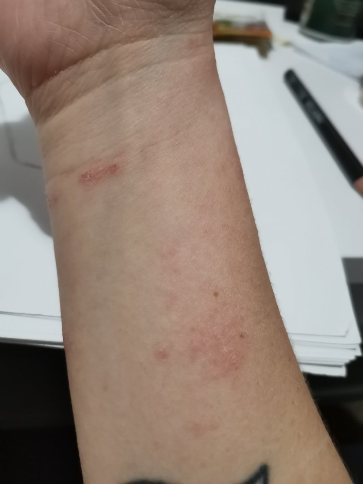 Ahojte baby. Čítala som že v tehotenstve je normálne že máte suchú pokožku. Chcem sa vás spýtať čo používate? Ja nikde nemám problém iba na ruke a stále si to škrabem hlavne keď prídem zo zimy do tepla už mám škaredé fľaky na ruke :( poraďte prosím :( (na fotke to možno vyzerá trošku desivejšie ako to v skutočnosti je 😃)