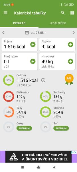 Denne prijmem 1500/1600kcal. Ako kedy - ked viacej zaberiem pri aktivite, jem viacej.