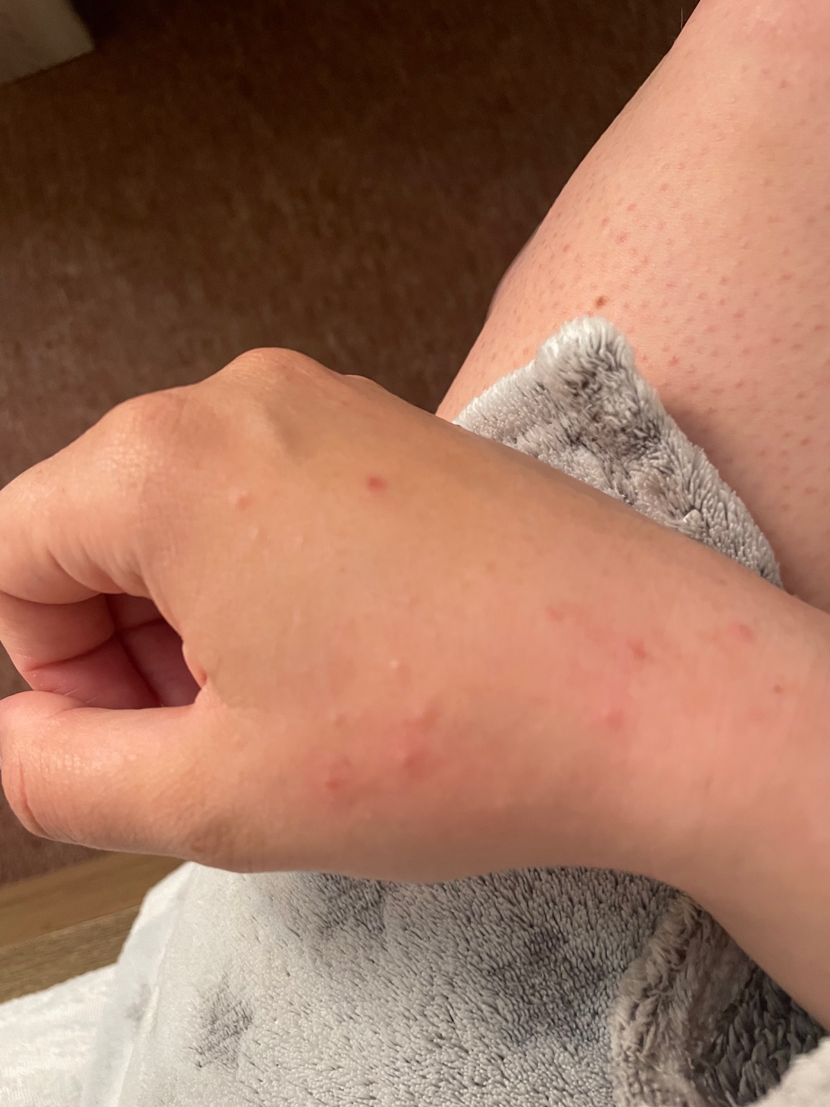 Ahoj ja som mala na zaciatku tehu take tiez dovne vyrazky na rukach zo dve tri a mne aa aj na bruchu robili. Zmizlo to zrazu. Ale mna nesvrbeli