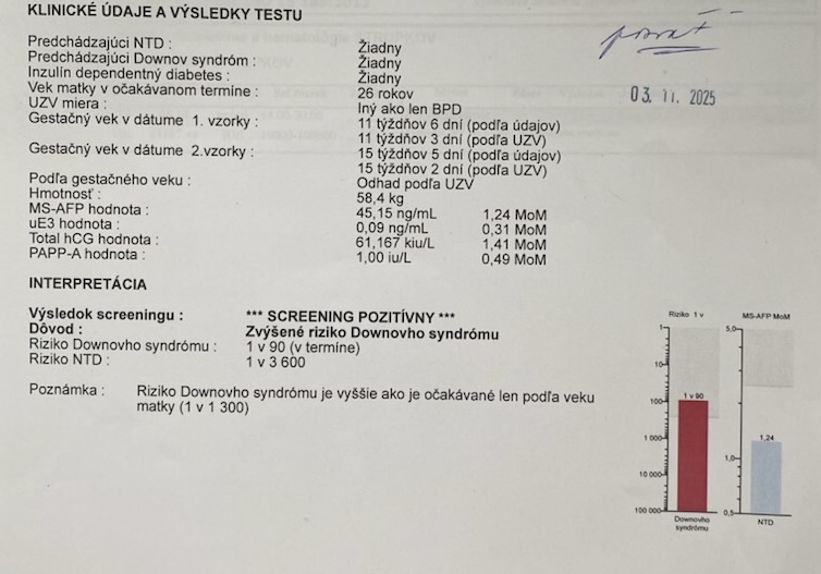 @katka1357s Daj nifty/ trisomyc proste nipt test spravit a mas hotovo na 95-98% a to uz mas velmi jasny vysledok, ze ci to je plany poplach.
