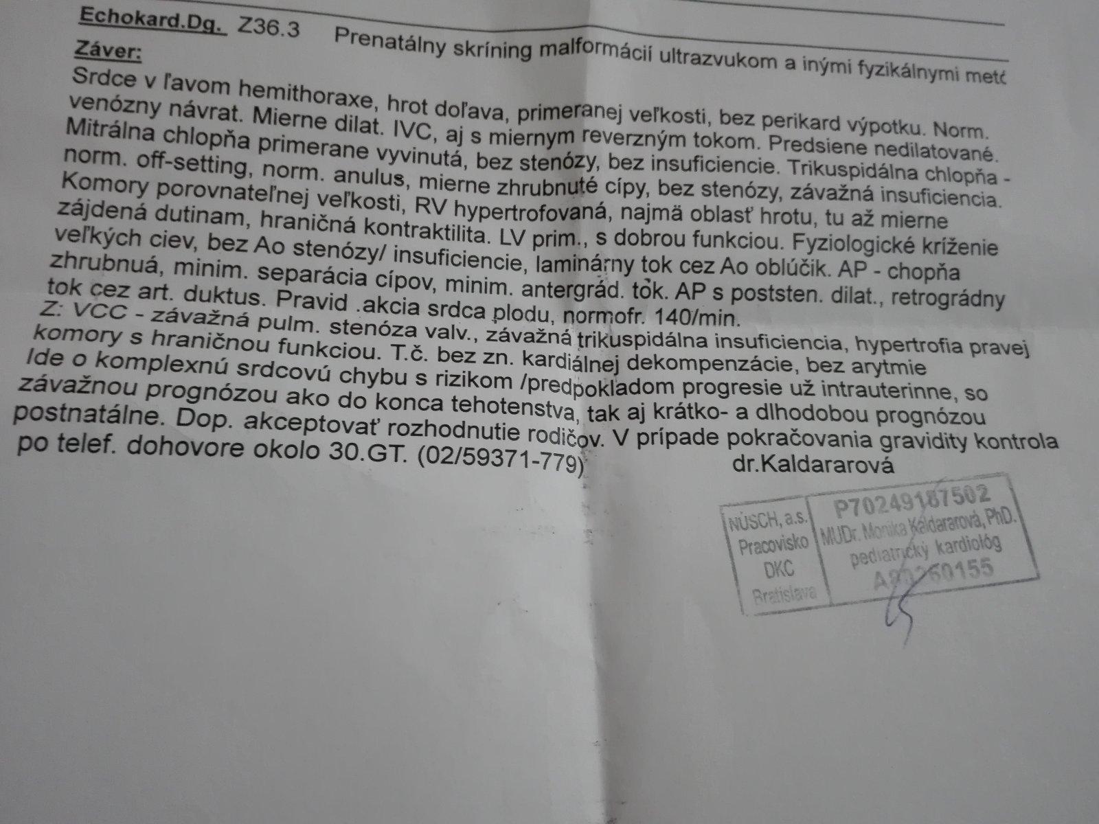 @luuciinka11 skonzultujte Prahu motol - je tam detske kardicentrum. Hned v pondelok. Zavolajte, poslite spravu. Amnio vobec nerieste. O prognoze babetka rozhoduje srdiecko. Ak nema na usg iny defekt tak chrom abnormalita napr nejaka trizomia su uplne nepravdepodovne. Len by vas to stresovalo. Ale mozte sa opytat aj kardiologa co si o amniocenteze mysli. Drzte sa. A urcite napiste ako ste dopadli. Poznam pripad kde urobii doslova zazrak, ale zas kamaratke zial nepomohli. Aspon budete vediet ze ste spravili vsetko co je vo vasich silach.