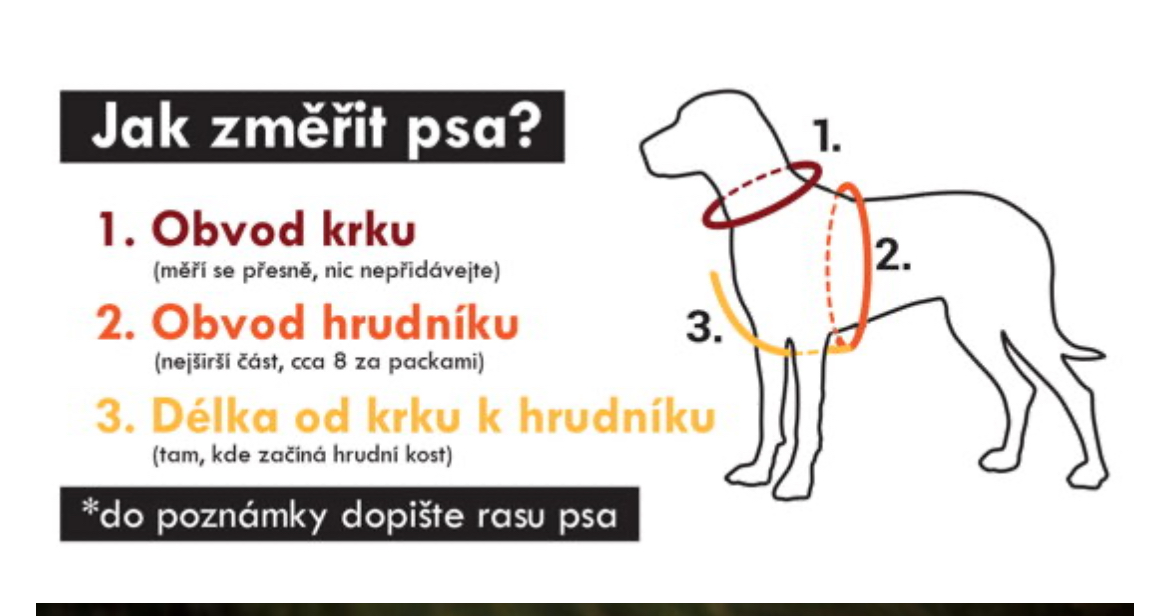 1 a 2 je celý obvod ako keď si meráš pás musí sa meter na konci stretnúť so začiatkom 3 začínaš merať tam kde 2 medzi labkami až po hrudnú kosť „nad prsia“.