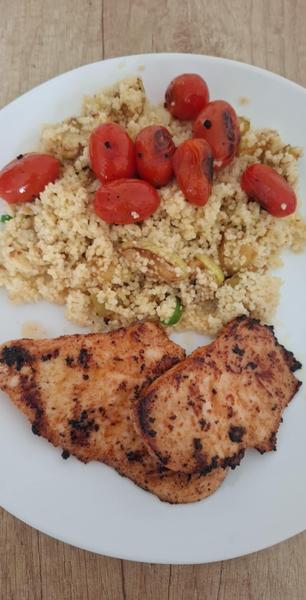 Včera sme boli na hubách, takže bravčové pliecko s hubami, ryža.