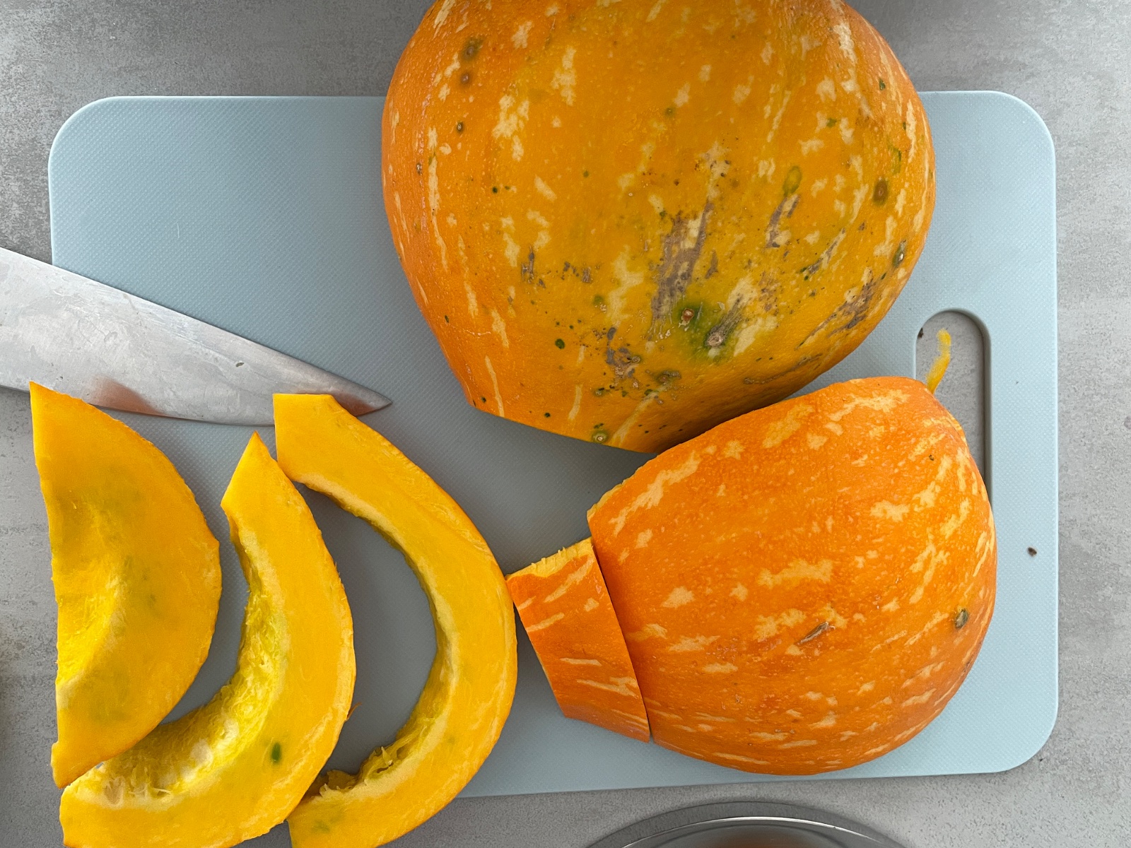 Umynjem, nakrajam na mesiaciky ako mas ty, poukladam na plech vylozeny papierom, hodim do rury a upeciem do makka. Aj ked idem robit polievku tekvicu peciem, aj na tekvicove pyre ju peciem, nie je taka vodnata