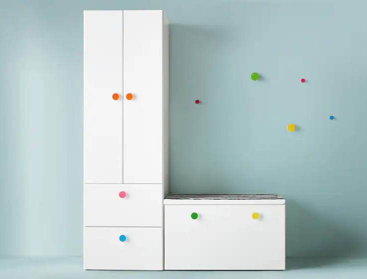 Ahojte, prosím neviete náhodou, aké sú to uchýtky na obrázku? Je to skriňa SMÅSTAD z IKEA. Páčia sa mi, že sú pestrofarebné, neviem ich nikde nájsť.