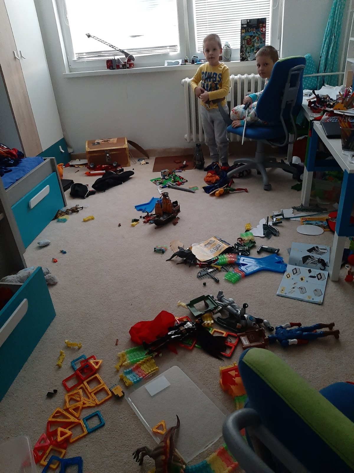 a hlavne ked upratuju hracky priebezne kazdy den tak sa im nestava situacia ze sa dostanu do takeho bordelu ze sa to upratat neda a musia to robit mega dlho... ako niekedy sa im podari urobit vybuch v izbe nenormalny aj tak.. ale vacsinu to nieje take katastrofalne ako keby som im dovolila tyzden neupratovat...