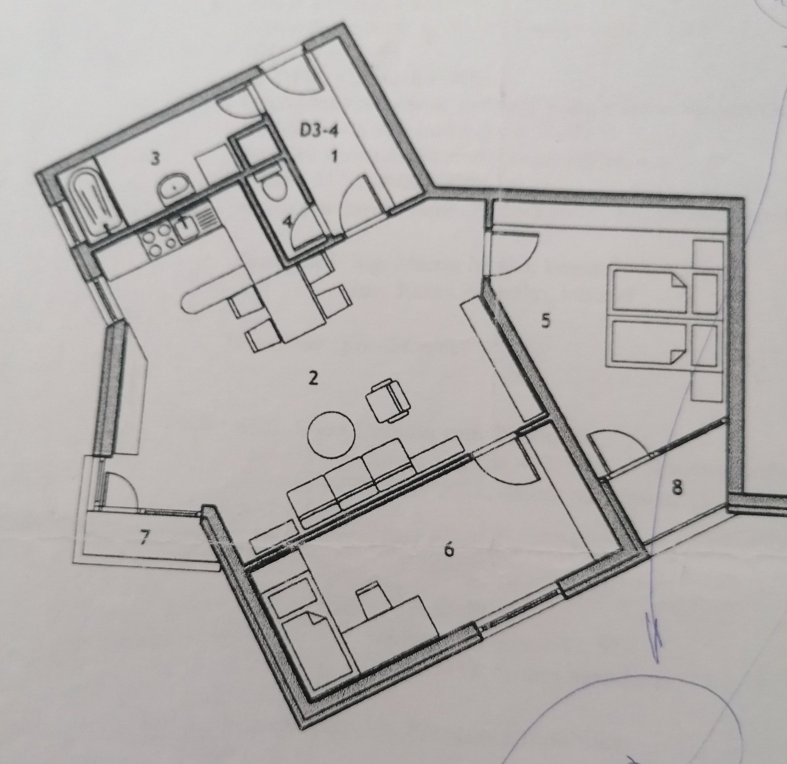 Bývame v 3-i. byte. Kuchyňa s obývačkou je otvorený priestor, t. j. k dispozícii sú len 2 samostatné izby.