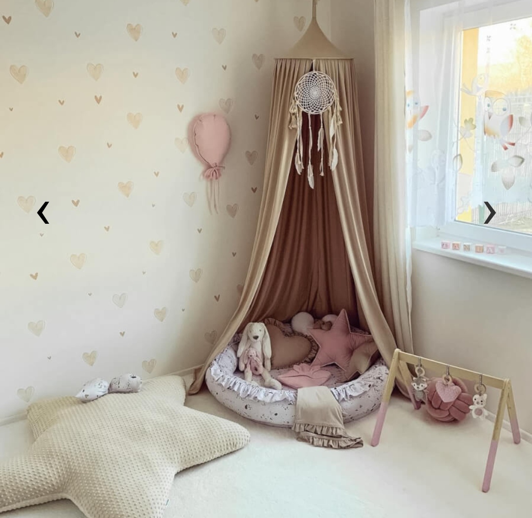 A teda riešime, že ako ju zariadiť, aby bola funkčná, praktická a aj pekná, útulná. Do detskej chceme dať normálnu dospelacku posteľ, aby sa na nej mohol vyspať muž ak bude treba, alebo návšteva, plus tam chcem nechať písací stôl ktorý tam bol, na ten dať prebaľovací pult, máme tam veľkú vstavanú skriňu, a teda chceme už len vymaľovať, pohrať sa s tapetami, dať tam nejaké regáliky, závesy, troška to zútulniť, a hrozne sa mi páči, keď je v izbičke taký ten baldachýn, pod ktorým je koberček, deky, vankúšiky, hračky, také miestečko na hranie, tak to tam chcem už teraz dať (viď foto), len tým, že nemám so zariaďovaním detskej izby skúsenosti, rozmýšľam, či toto bude skutočne praktické a funkčné (najmä ten baldachýn), či to nebude iba zbytočná dizajnovka. Čo pre vás bolo také, čo ste s odstupom času povedali, že super že ste to do detskej dali, že to má dobré využite, a čo naopak bolo to, čo ste si povedali že bola zbytočná blbosť? Napríklad sa mi páči aj taka tá tabuľa na písanie s kriedou, čo sa dá na stenu, ale zas neviem, či to neni zbytočná blbosť.