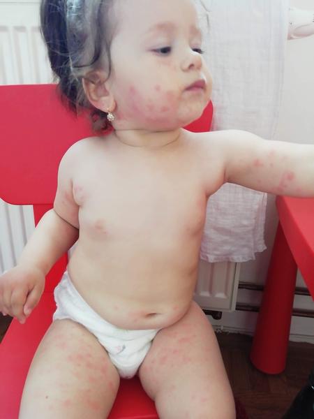 ona mala flaky po celom telicku,na tvaricke,kolovalo jej to vsade az bola cela cervena,v nemocnici boli vyplaseni ale nastastie ditiaden nam zabral a naozaj to trvalo par dni,nezistili sme nikdy z coho co bol spustac,mudr obvodna vravela ze to mohol byt v dany den kombinacia potravin ktore sme jedavali ale zrovna nezapasovalo,nezistili sme,proste prislo a odislo