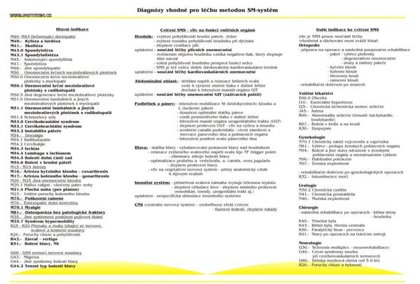 Jedna sa o subor naoko velmi jednoduchych 12 zakl. cvikov, ktr. su vsak velmi ucinne. Zo zac. je potrebne cvicit pod dohladom odbornika, min.1xtyzdenne pod dohladom + kazdy den doma, K cviceniu je potrebne elast. lano + podlozka. Viac o tejto metode, aj o vysledkoch so snimkami si mozete pozriet na ofic. stranke autora tejto metody, Dr. Smiska, s 30r praxou: www.smsystem.cz. Najdete tam aj zoznam cvicitelov na SK podla regionu.