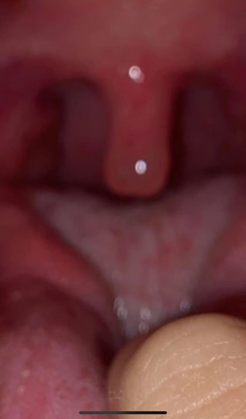 @sofinkaofinka123 podľa mňa je opuchnutý, zrejme z infekcie, možno jej začína angína keď sa jej ťažko prehĺta, cmulat Strepsils alebo také nejaké pastilky, kloktat bylinkami alebo slanou vodou a zavolať lekárovi v pondelok. Nemá teplotu?