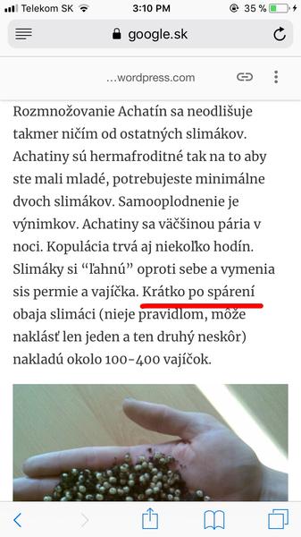 Dobrý, mohla by som sa opýtať že kedy asi nakladú slimáci vajíčka keď sa včera 17:00 začali páriť? Na nete som veeeeeľa toho čítala že vajíčka začnú klásť chvíľu po spárení a už je druhý deň 10:42 ráno a furt nič😔