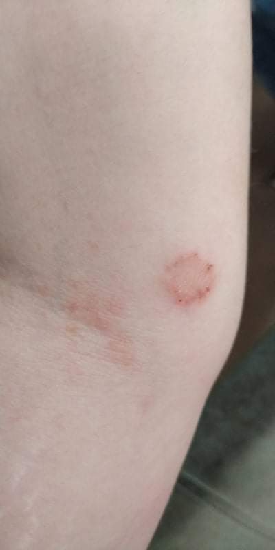 Mix potničiek a ekzému. Toto guľaté ložisko je skôr ekzém a tamto je asi v jamke kde je lakeť ? To vyzerá ako zaparene potnicky. Ja to tak mám a nejak tak to vyzerá 😁 hlavne neskrabat