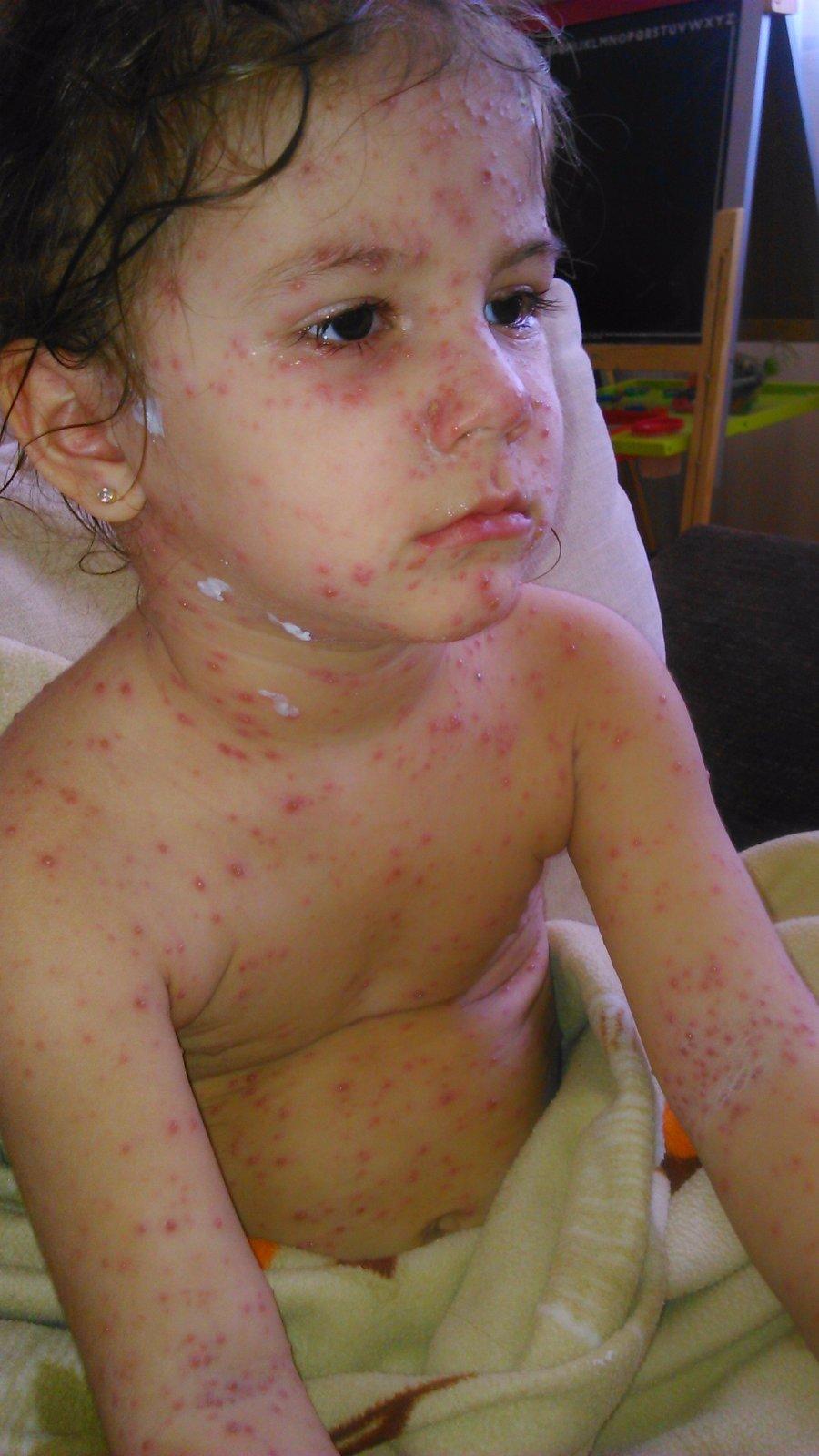 Ahojte ma niekto skúsenosti s takýmto vysypom pri kiahnach?malý ma 18mes kiahne ma 4den a takto sa stále pribúdajú a má to takto aj po rukách a tele celom.nedá sa to ani po pupakoch natierať to by som robila donekonečna.strháva sa zo spánku zle spí dávam mu fenostil ale aj tak ho to svrbi teploty ma až dnes štvrtý deň nad 38.vyrážky su prevažne červené niektoré naliate.oblievam mu ich aj repikom.bojím sa o neho aby sa to ešte viac nezhorsilo.masť používam dermalibour.aj propolis som skúšala.prosím poraďte ako mu pomôcť som zúfalá
