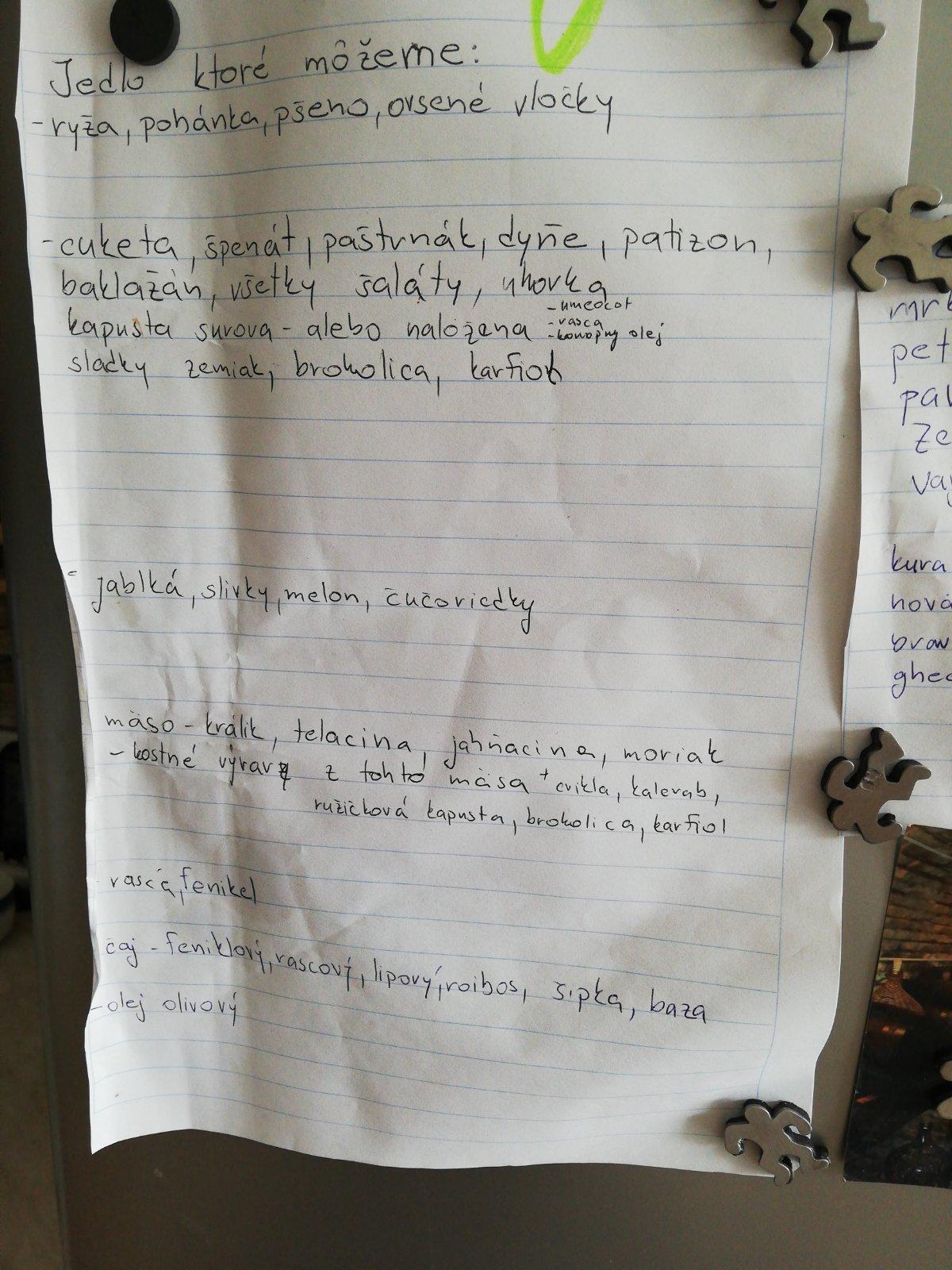 Povolene jedla su ako semafor - zelene vzdy, oranzove obcas a cervene stop.