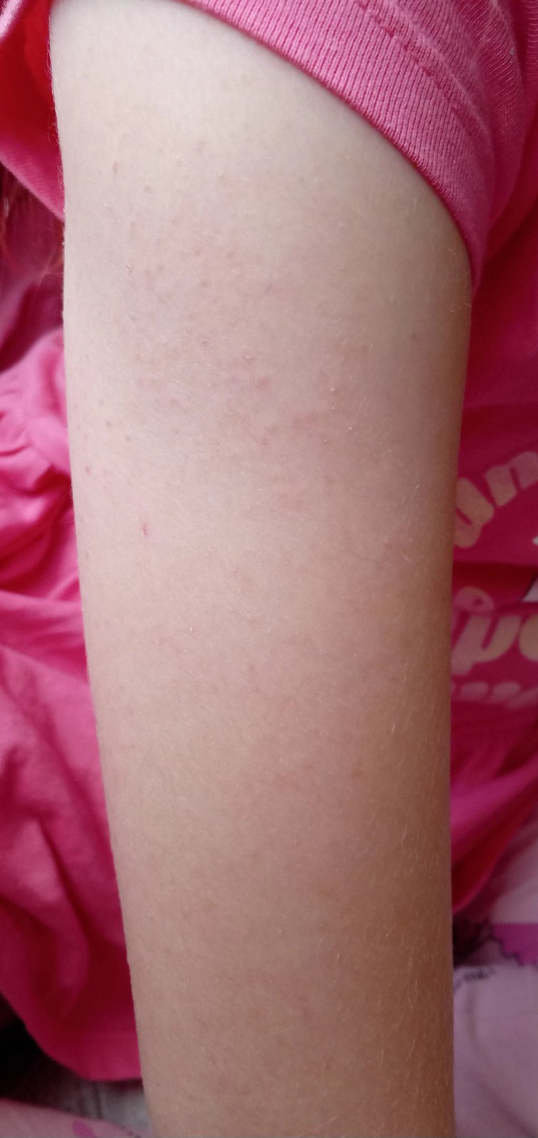 Keratóza je niekedy len estetická, často dedičná, no často x ide aj o prejav nejakej alergie. Moja dcéra je alergička a tiež to má, teda skôr mala. Kým sme o alergií nevedeli, tak to mala dosť výrazné a po nasadení liečby to má o 99% lepšie. Ak je to len kozmetické, tak skus jej robiť jemné peelingy, ošetruje krémom s kyselinou mliečnou alebo Keralanom.