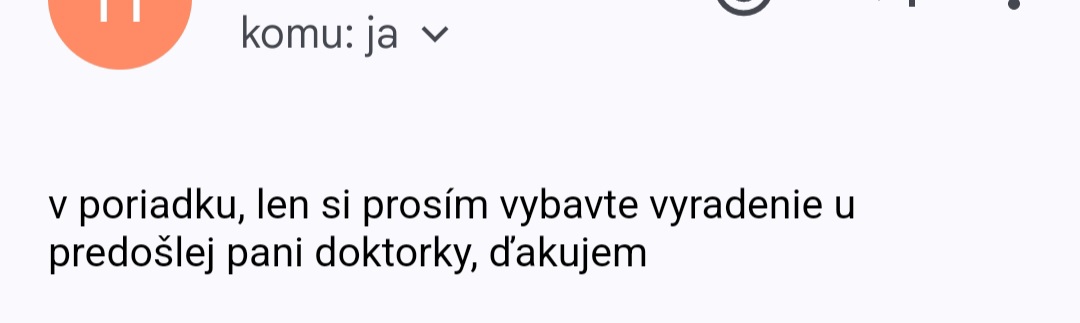 Ďakujem, len nová mi napísala mail, ze mam si to vybaviť 🤣 tak neviem ten postup, nic mi nenapísala také, ze mi dá vyradenku lebo co 🤷