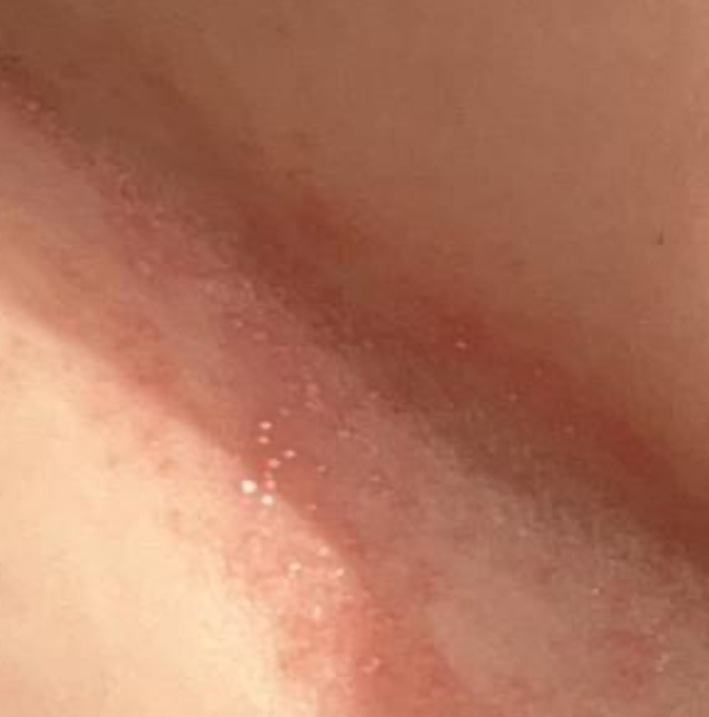Od rána má moja 11-mesačná Arianka medzi nožkami a na ritke červené miesta, vyzerá to ako zapareniny. Ráno mala červenú len jednu stranu, ale teraz už aj druhú. Umývala som jej to, nechala vyschnúť a natrela Sudocremom. Od rána ju nechávam bez plienky, nech sa vetra. Tie biele bodky budú asi od sudocremu.