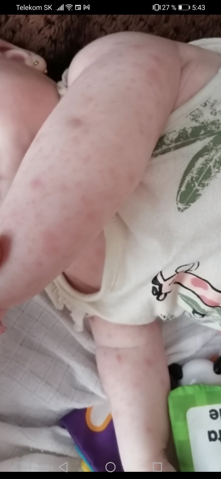 Vnučik 8 mes.s niečím podobným bol včera na pohotovosť vo francúzsku.nemal horucku ani nevyzeralo.ze ho to svrbí.uzavreli to ako vírus.ze nič vážne.neviem.ci dali dáke lieky.