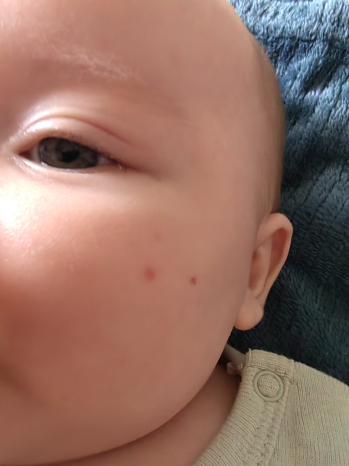 dobry den, vie mi niekto poradit? Dcera ma 3m a 2 týždne a včera ráno sa zobudila s takýmito bodkami na líčku, jedna je úplne ako podliata krvou, 2 su take bledsie aj na druhom licku ma jednu taku bledu...od slin to nie je, ani poskrabane, spi zavinuta...pije len to iste mliečko, fľašky zakaždým sterilizované, aj cumlík, nemenila som praci prach, vsetko ma čisté, vyzehlene...za posledné 2 mesiace sme nemenili absolútne nic, tak si to neviem vysvetlit 🤷🏼 a zajtra sa ma očkovať, prve 2 očkovania plus rotavirus...doktorka dnes neordinovala a zajtra ideme poobede aj na poradnu...je to prve babo, vobec neviem, z coho by to mohlo byt, ci sa moze takto očkovať...ma vyznam urobit crp? Mam jej na to dačo dat? Kupeme ju od narodenia len v čistej vode, ani len krem jej nedávam (jedine sudocrem raz za den na riťku)...budem vďačná za radu, co by to mohlo byt a co s tym... (Teplotu nema, zuby nejdu)
