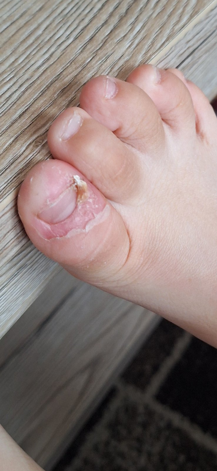 zarasteny nechet, kvalitne je to zapalene a este stale tam ma hnis. Skus hladat medicinalnu pedikuru, kde jej to daju aspon ako tak do poriadku a nauc sa ako spravne strihat nechty na nohach