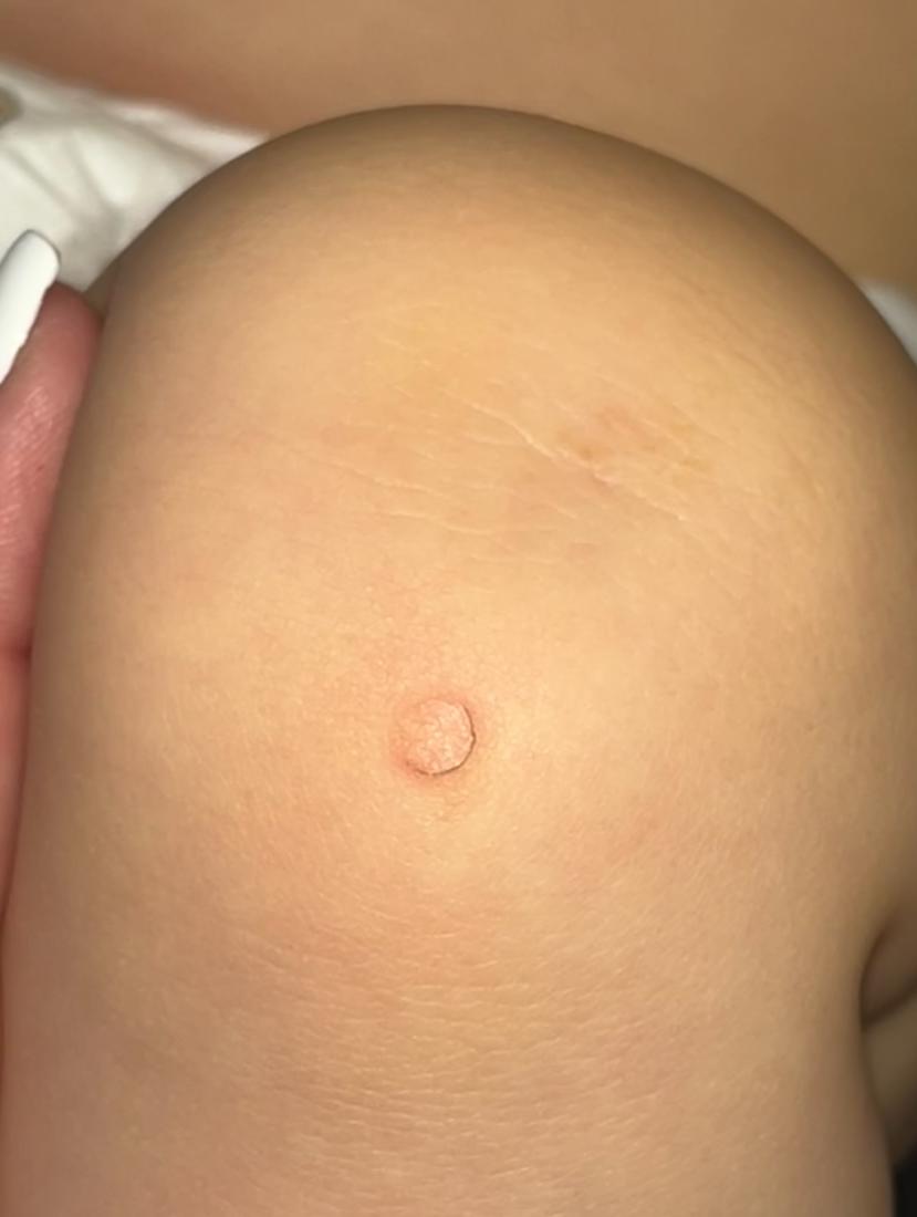 Mne to tiež pripadá ako odretá koža, alebo pľuzgier, ktorý praskol. Neštvornožkuje akurát? Že by si "spálil" kožu? Alebo jednoducho odrel?