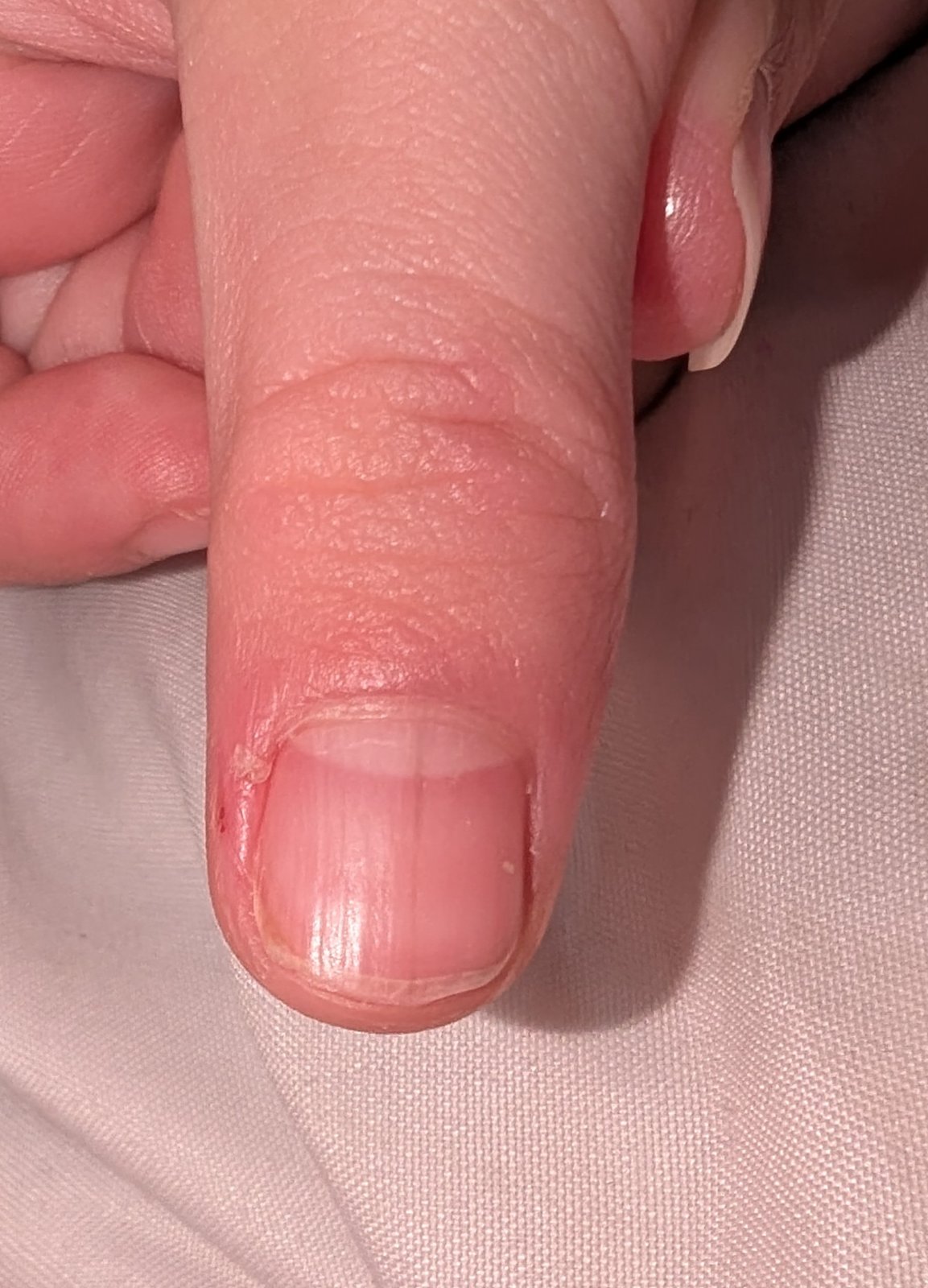 Pozeram, ze dieta si okusuje nechty. Nekusla si viac resp. tak ze si sposobila poranenie? No kazdopadne, ak to do par dni nezmizne, tak smer dermatologia.