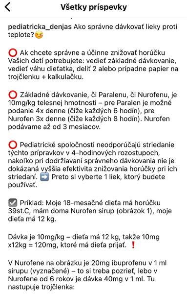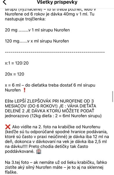 @euka210 zbytocne prepocitavate, vypocitane je dobre… Ale na krabicke je davkovanie vypocitane s najnizsou moznou davkou, ale dieta moze a pri horucke by aj malo dostat viac (30mg/kg), pretoze ak je dieta poddavkovane, nemusi horucka klesat tak, ako by mala a mohla, keby dieta dostalo adekvátnu davku. Pokial dieta dostava Nurofen len od bolesti, napr pri raste zubov, pokojne davajte tu najnizsiu davku, ale pri horucke nie.