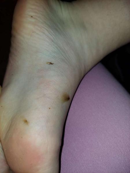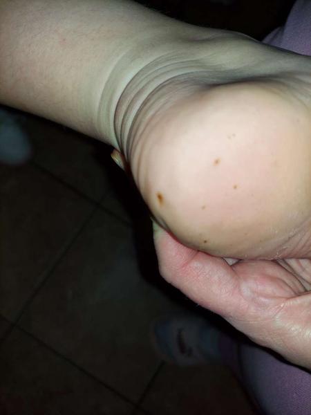Na nohach naozaj ako,flaky z hypermanganu.
